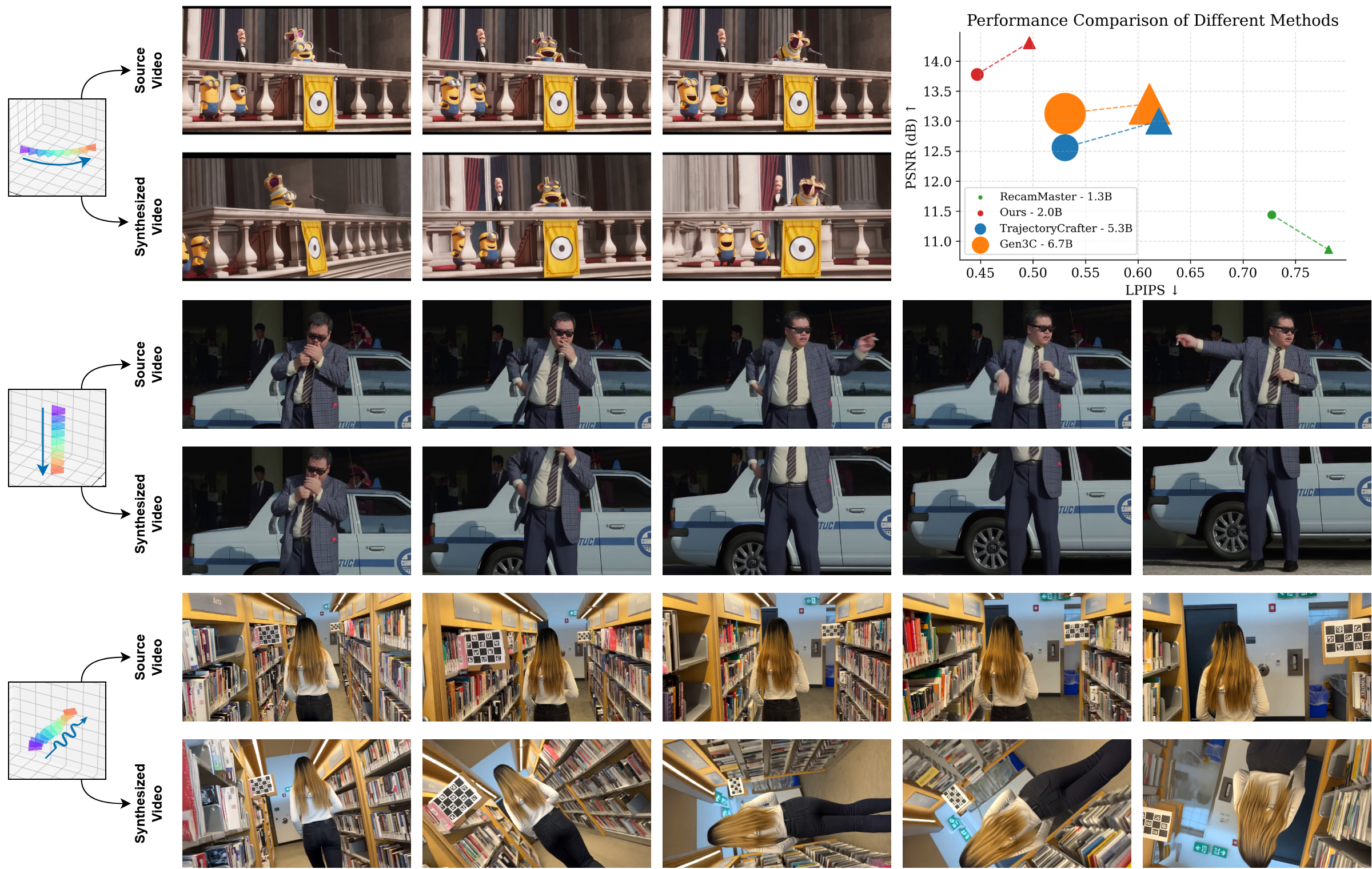 Video (camera) trajectory editing (VTE) aims to synthesize new videos that follow user-defined camera paths while preserving scene content and plausibly inpainting previously unseen regions, upgrading amateur footage into professionally styled videos.